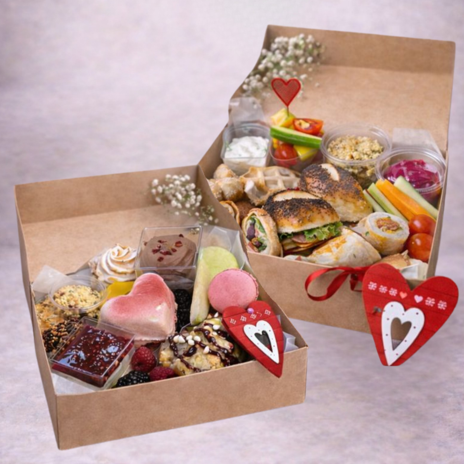 Pour compléter cette attention florale, le coffret s’accompagne de deux plateaux gourmands, soigneusement préparés. Ces assortiments de douceurs salées et sucrées ont été pensés pour créer un véritable moment de partage. Chaque bouchée apporte une touche de plaisir et de convivialité, idéale pour un tête-à-tête amoureux ou une soirée spéciale placée sous le signe de la gourmandise.